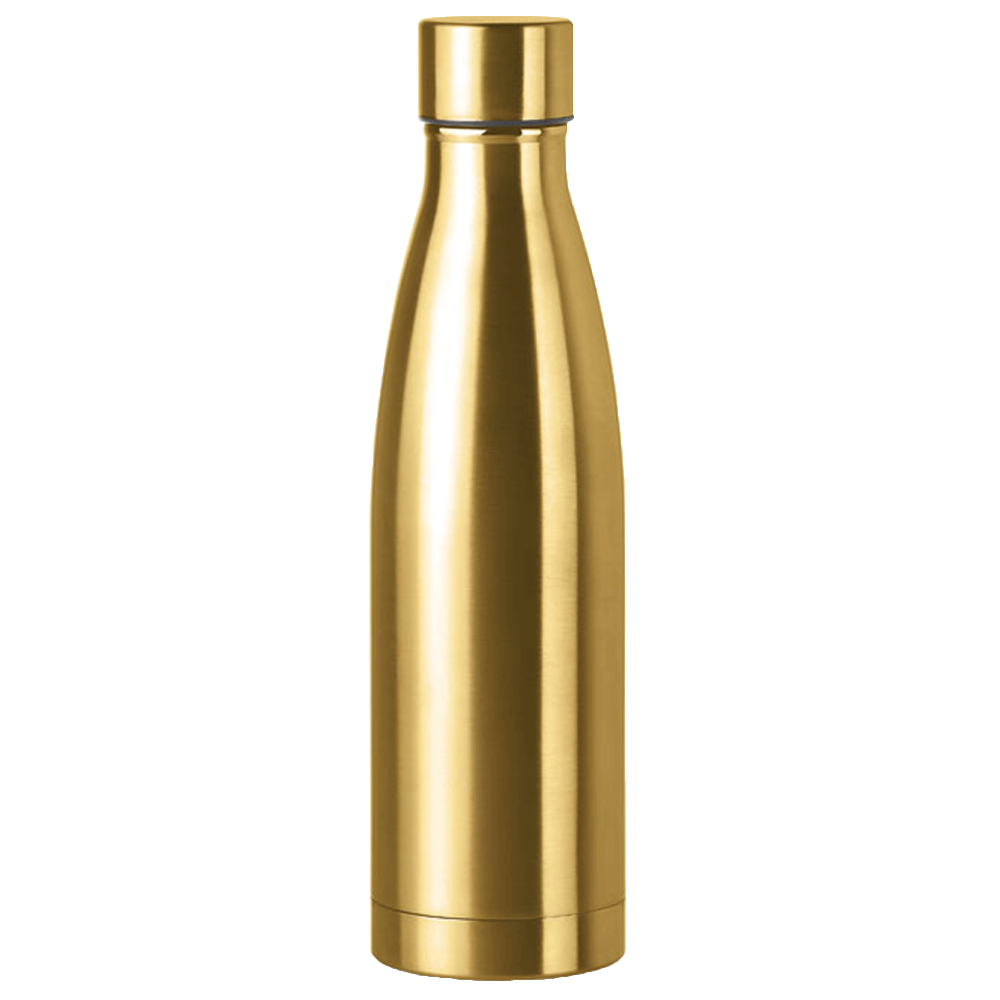 Botella de acero inoxidable de doble pared aislado al vacío e interior de cobre, permitiendo mantener el calor y el frío durante un tiempo prolongado, llegando a las 12 y 48 horas respectivamente.