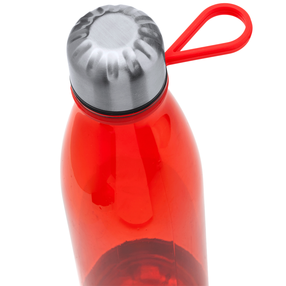 Bidón de 700ml en acabado AS transparente. Tapón y base de acero inoxidable.