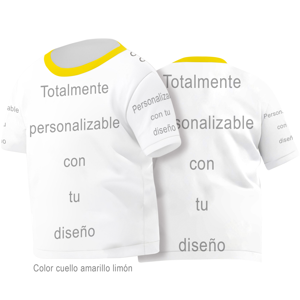 Personaliza la camiseta al 100%: delante, detrás y mangas. También puedes escoger el color del cuello.