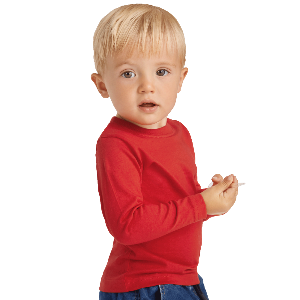 • Las camisetas de bebé de manga larga son de la marca Roly, modelo Baby LS.