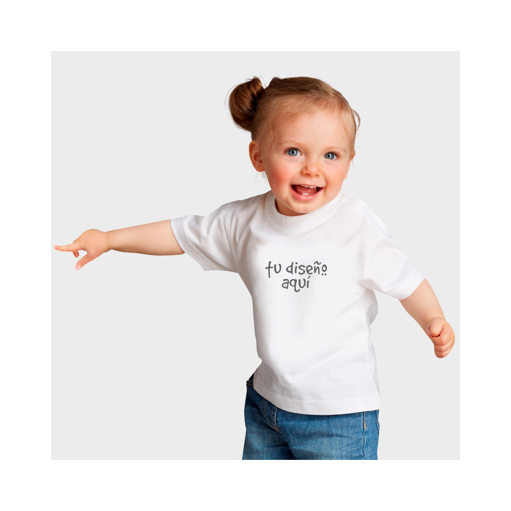 - Las camisetas de bebé de manga corta son de la marca Roly, modelo Baby, o bien del fabricante Sol's, modelo Mosquito. La elección del modelo va a discreción de stock y disponibilidad. En caso de no disponer de ninguno de los dos modelos, se proporcionará un modelo parecido, de igual o mayor calidad, nunca inferior.