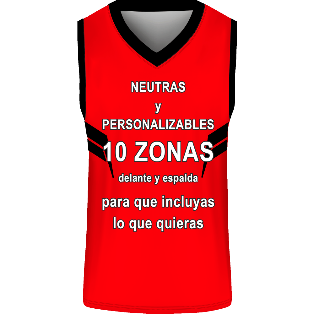 Camiseta unisex ideal para actividades como baloncesto. Modelo Cuernos sin mangas y con cuello en pico que puedes personalizar hasta en 10 zonas diferentes.