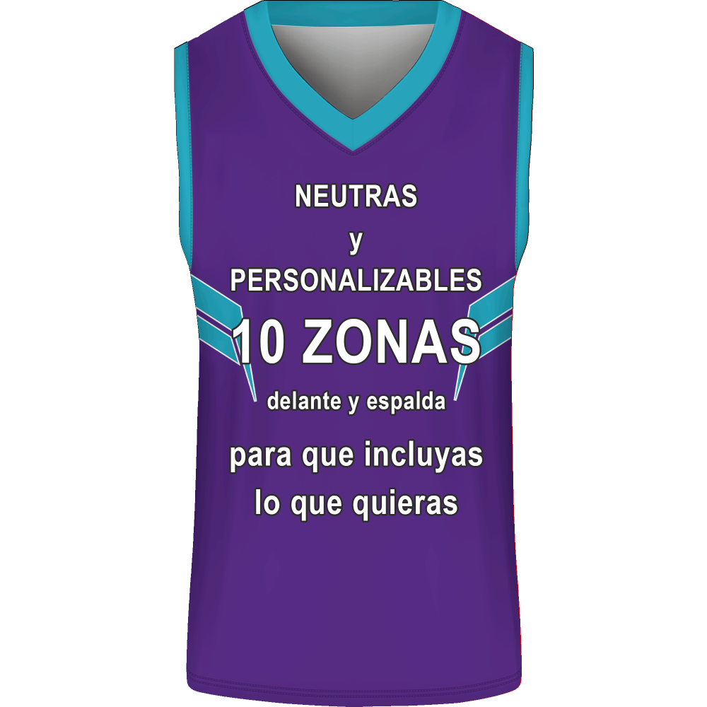 Camiseta unisex ideal para actividades como baloncesto. Modelo Cuernos sin mangas y con cuello en pico que puedes personalizar hasta en 10 zonas diferentes.