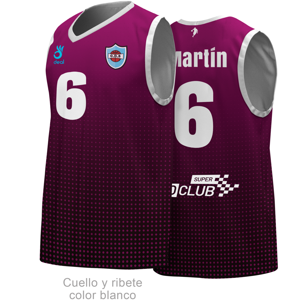 Camiseta ideal para actividades como baloncesto. Modelo ALEMANIA sin mangas y cuello en pico que se puede personalizar al 100% por delante y detrás. También podrás escoger el color del cuello y ribete.