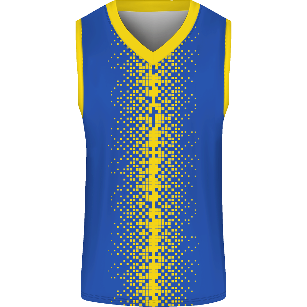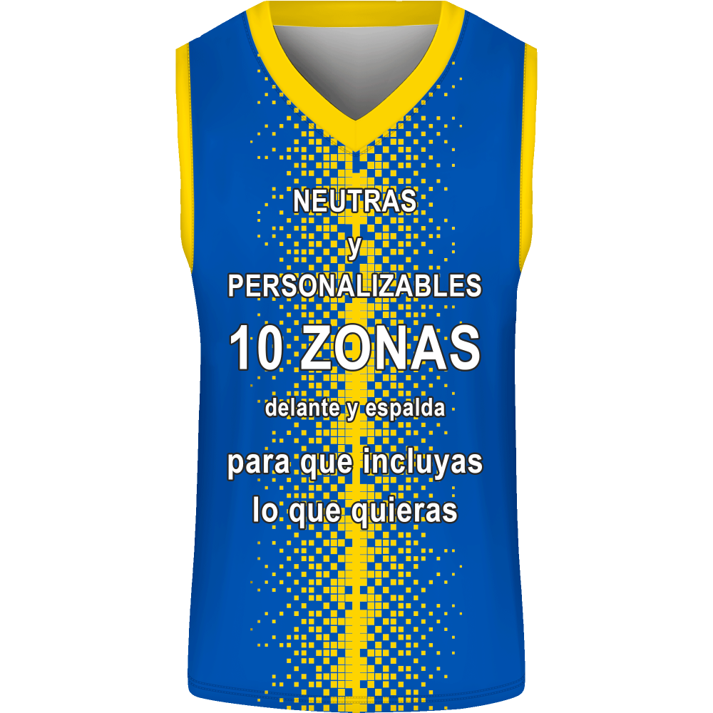 Camiseta unisex ideal para actividades como baloncesto. Modelo Pixels sin mangas y con cuello en pico que puedes personalizar hasta en 10 zonas diferentes.