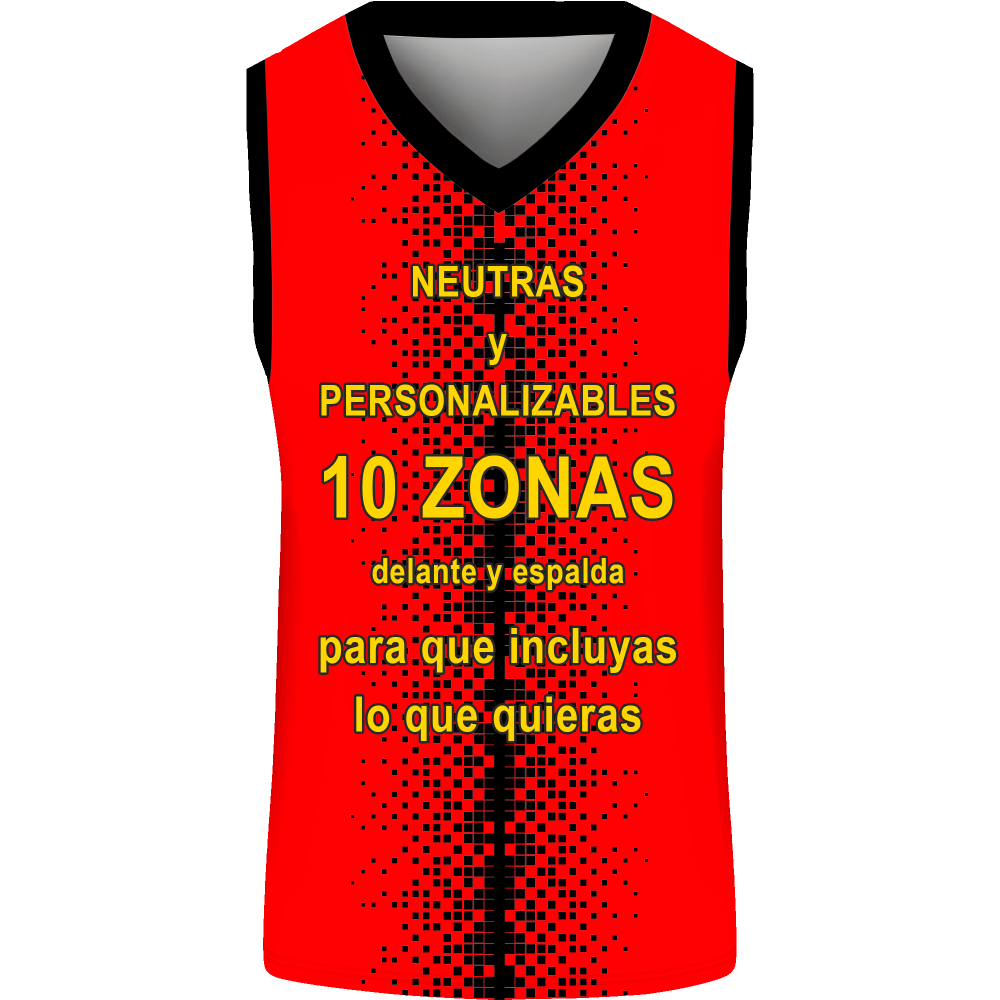 Camiseta unisex ideal para actividades como baloncesto. Modelo Pixels sin mangas y con cuello en pico que puedes personalizar hasta en 10 zonas diferentes.