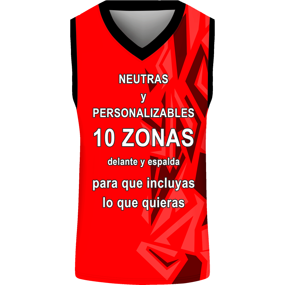 Con nuestras camisetas, ideales para actividades como baloncesto, podrás personalizarla hasta en 10 zonas con nombres, números, escudos, logos, sponsors, banderas, marcas, mensajes... o lo que se te ocurra