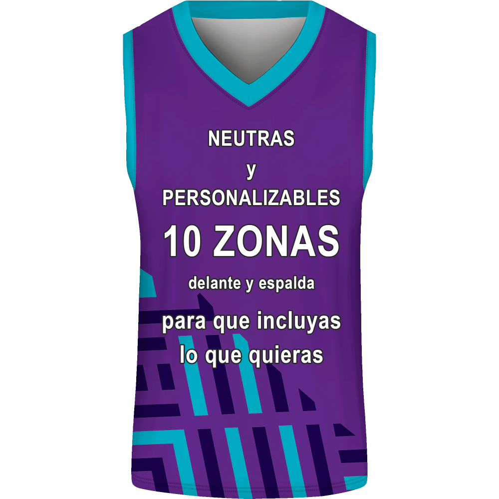 Camiseta unisex ideal para actividades como baloncesto. Modelo Geométrico sin mangas y con cuello en pico que puedes personalizar hasta en 10 zonas diferentes.