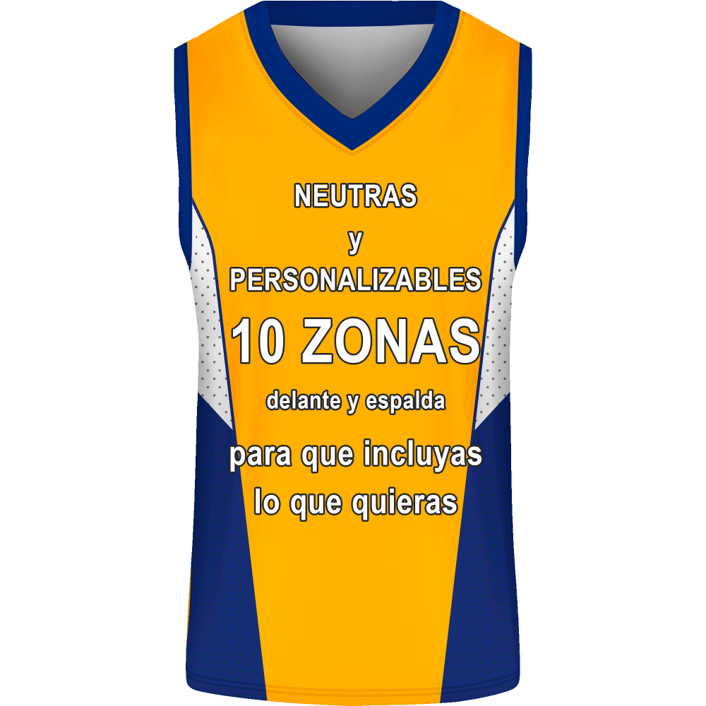 Camiseta unisex ideal para actividades como baloncesto. Modelo Puntos sin mangas y con cuello en pico que puedes personalizar hasta en 10 zonas diferentes.