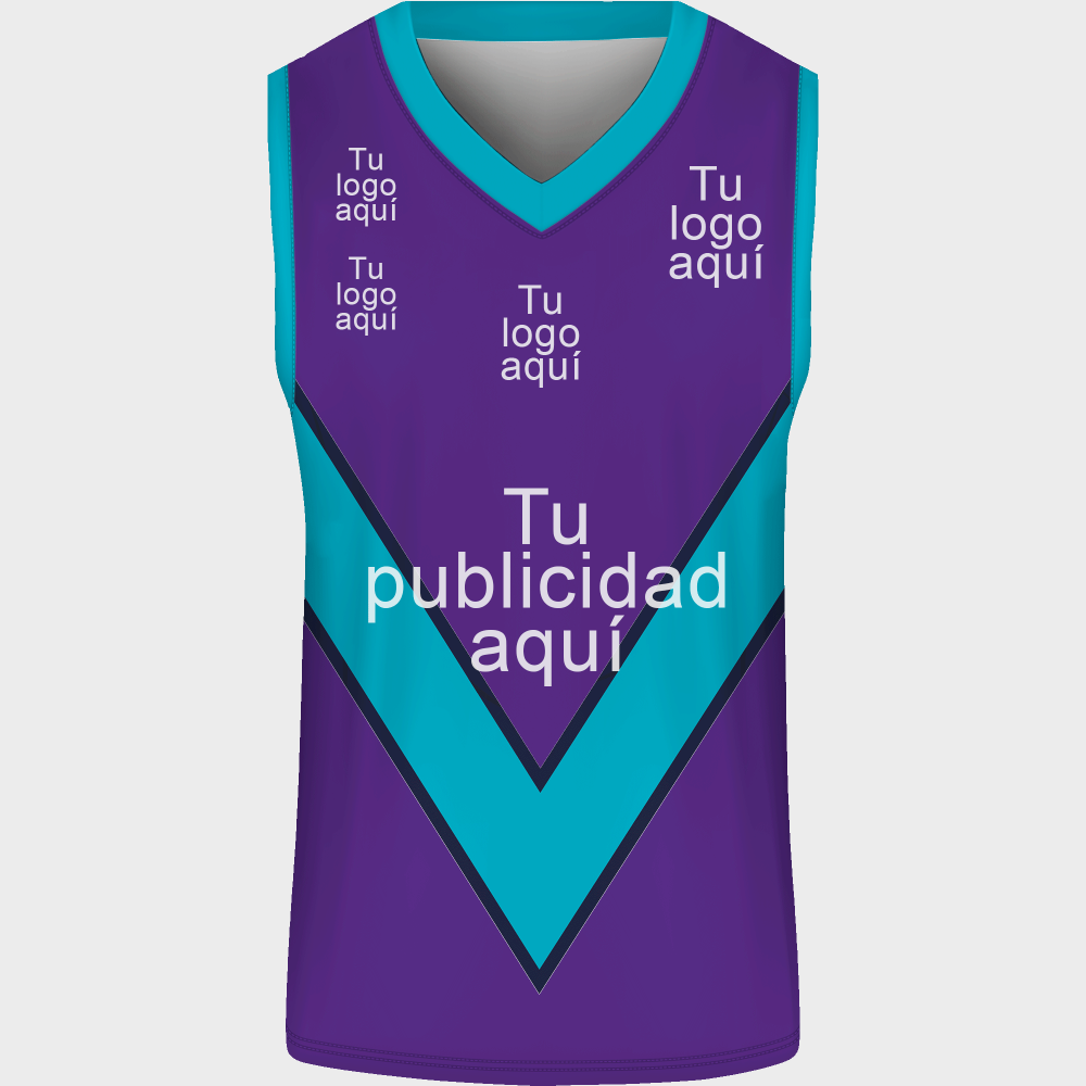 Camiseta unisex ideal para actividades como baloncesto. Modelo Flecha sin mangas y con cuello en pico que puedes personalizar hasta en 10 zonas diferentes.
