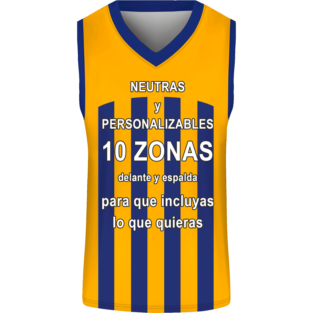 Camiseta unisex ideal para actividades como baloncesto. Modelo Rayada sin mangas y con cuello en pico que puedes personalizar hasta en 10 zonas diferentes.