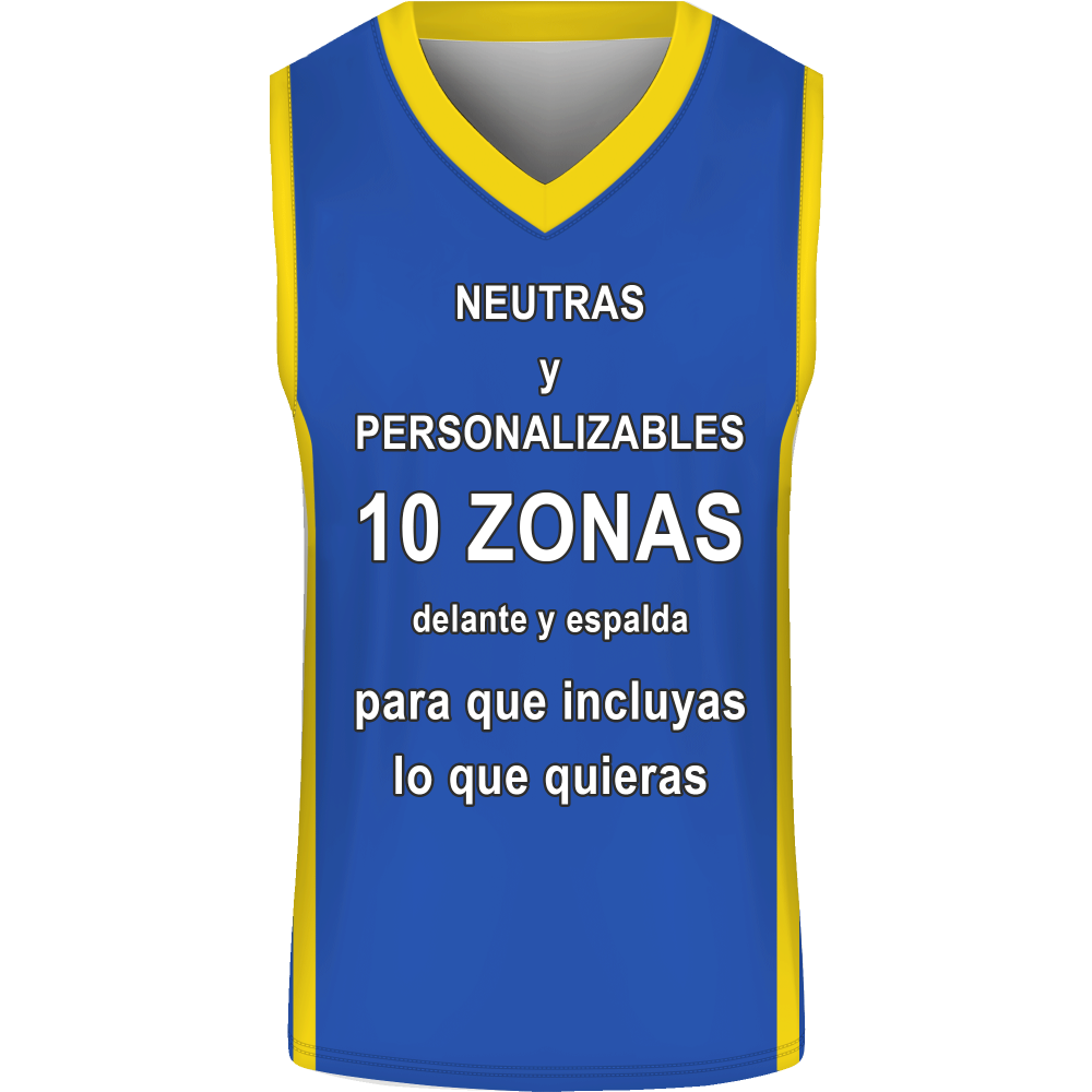 Camiseta unisex ideal para actividades como baloncesto. Modelo Liso sin mangas y con cuello en pico que puedes personalizar hasta en 10 zonas diferentes.