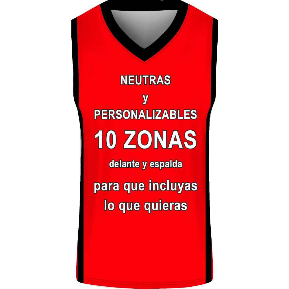 Camiseta unisex ideal para actividades como baloncesto. Modelo Liso sin mangas y con cuello en pico que puedes personalizar hasta en 10 zonas diferentes.
