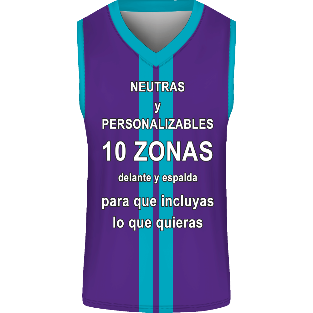 Camiseta unisex ideal para actividades como baloncesto. Modelo Paralela sin mangas y con cuello en pico que puedes personalizar hasta en 10 zonas diferentes.