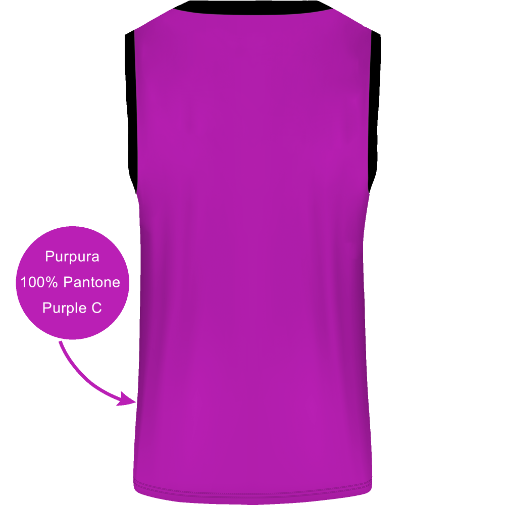 Camiseta unisex ideal para actividades como baloncesto. Modelo sin mangas y con cuello redondo contrastado que puedes personalizar hasta en 20 zonas diferentes.