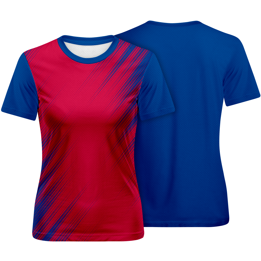 Camiseta de mujer ideal para actividades como fútbol. Modelo Zig Zag de manga corta y con cuello redondo que puedes personalizar hasta en 12 zonas diferentes.