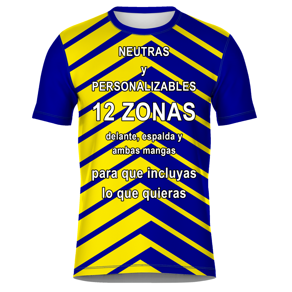 Camiseta ideal para actividades como fútbol. Modelo Picos de manga corta y con cuello redondo que puedes personalizar hasta en 12 zonas diferentes.