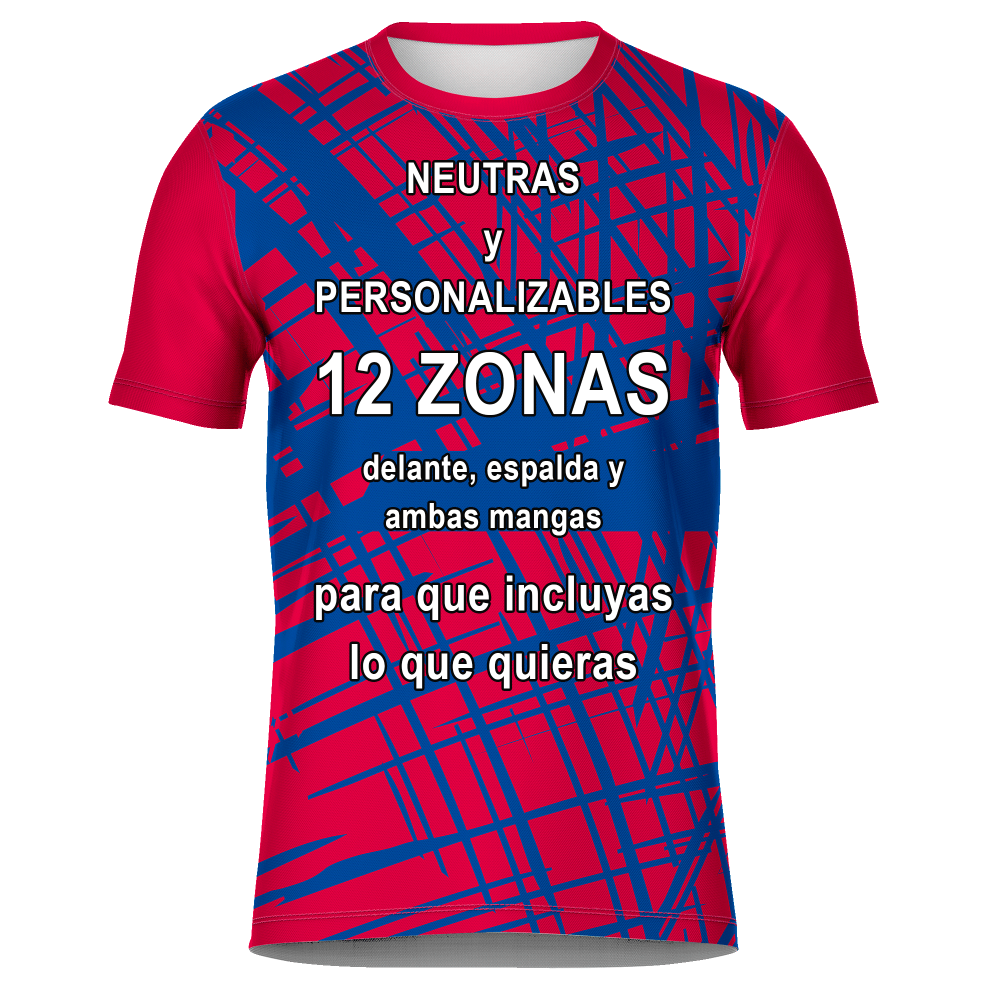 Camiseta ideal para actividades como fútbol. Modelo Pinceladas de manga corta y con cuello redondo que puedes personalizar hasta en 12 zonas diferentes.