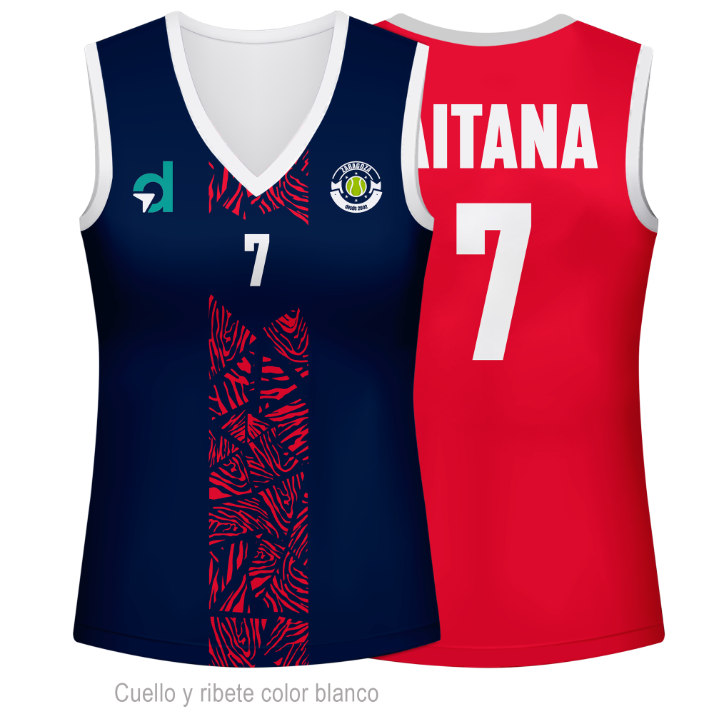 En esta prenda puedes personalizar la totalidad de la parte delantera y trasera. También podrás escoger el color del cuello y ribete.