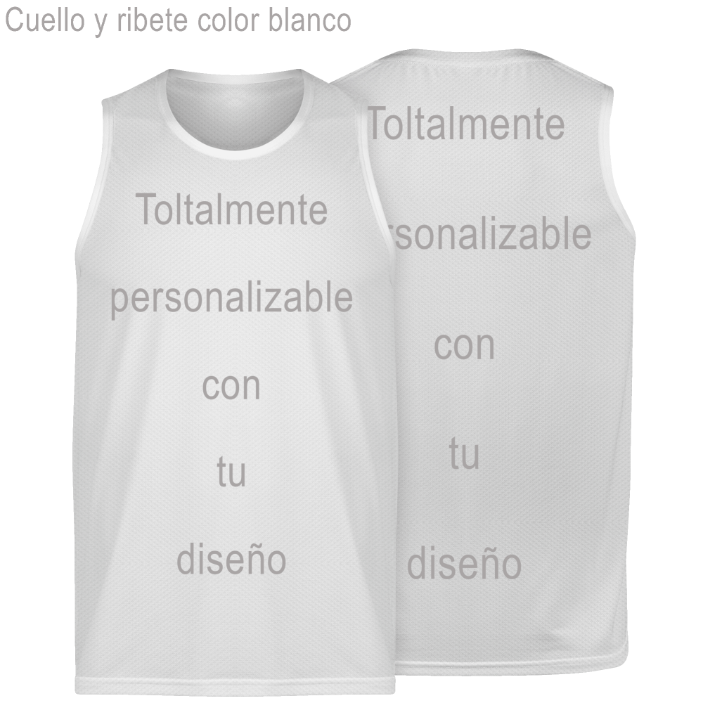 En esta prenda puedes personalizar la totalidad de la parte delantera y trasera. También podrás escoger el color del cuello y ribete.