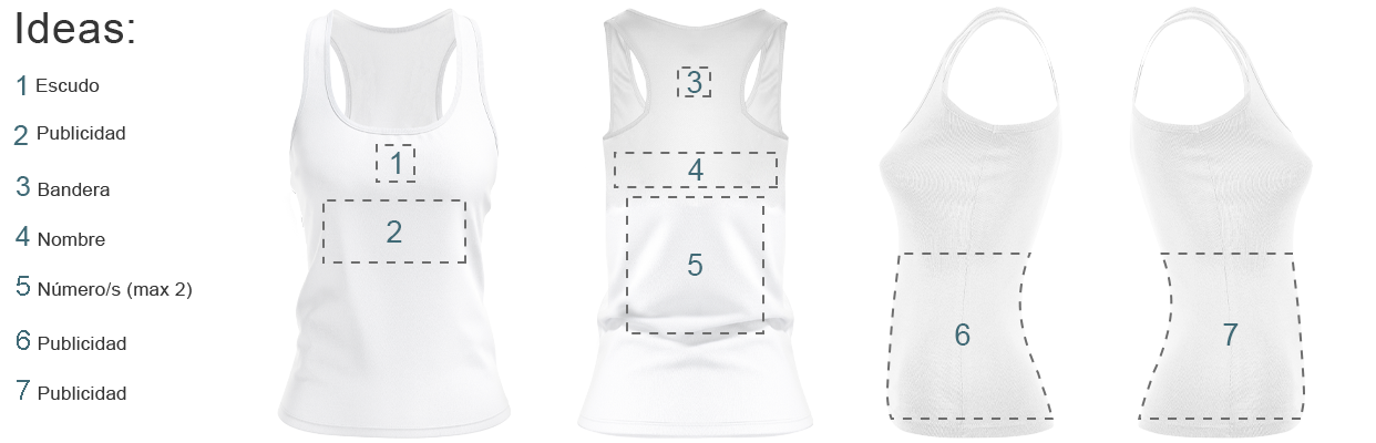 Camiseta de mujer ideal para actividades como voleibol. Modelo Banjul con tirantes y espalda tipo nadadora que puedes personalizar hasta en 7 zonas diferentes.