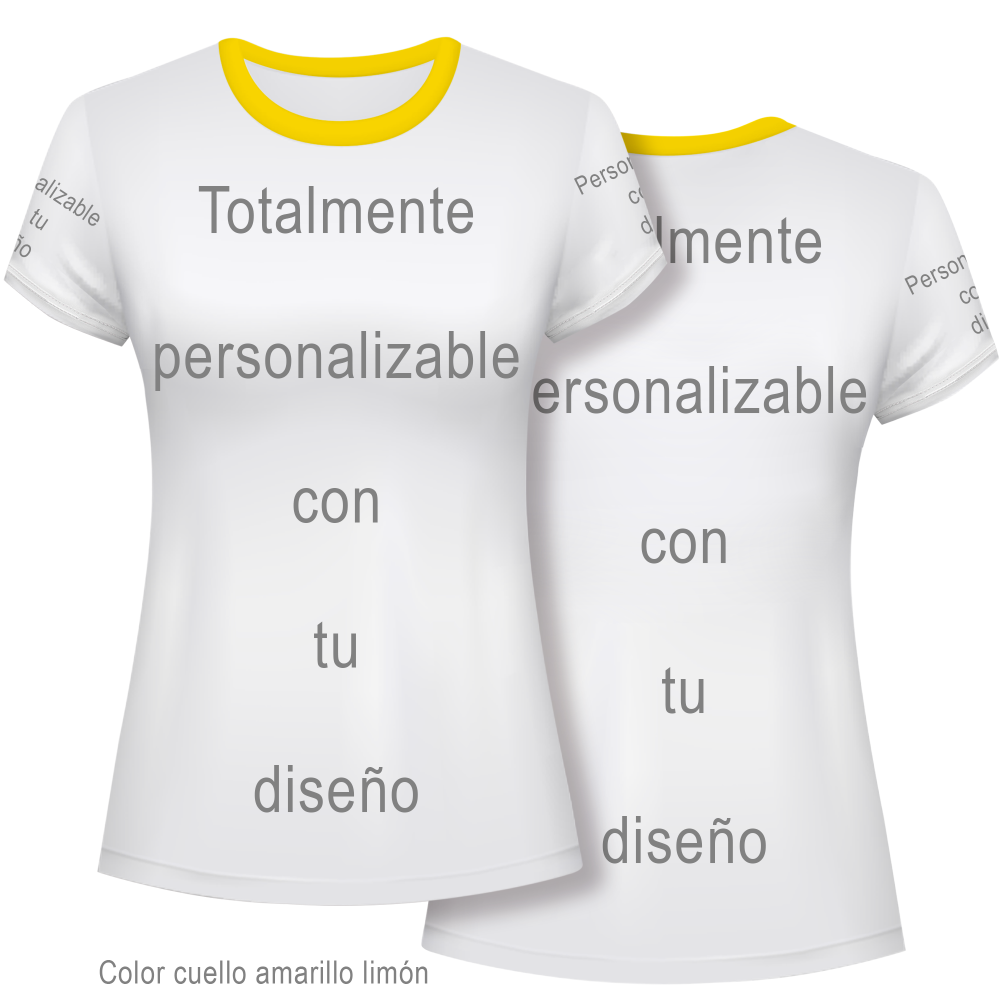 Camiseta de mujer ideal para actividades como voleibol. Modelo TURQUÍA de manga corta y cuello redondo que se puede personalizar al 100% por delante, detrás y mangas. También podrás escoger el color del cuello.