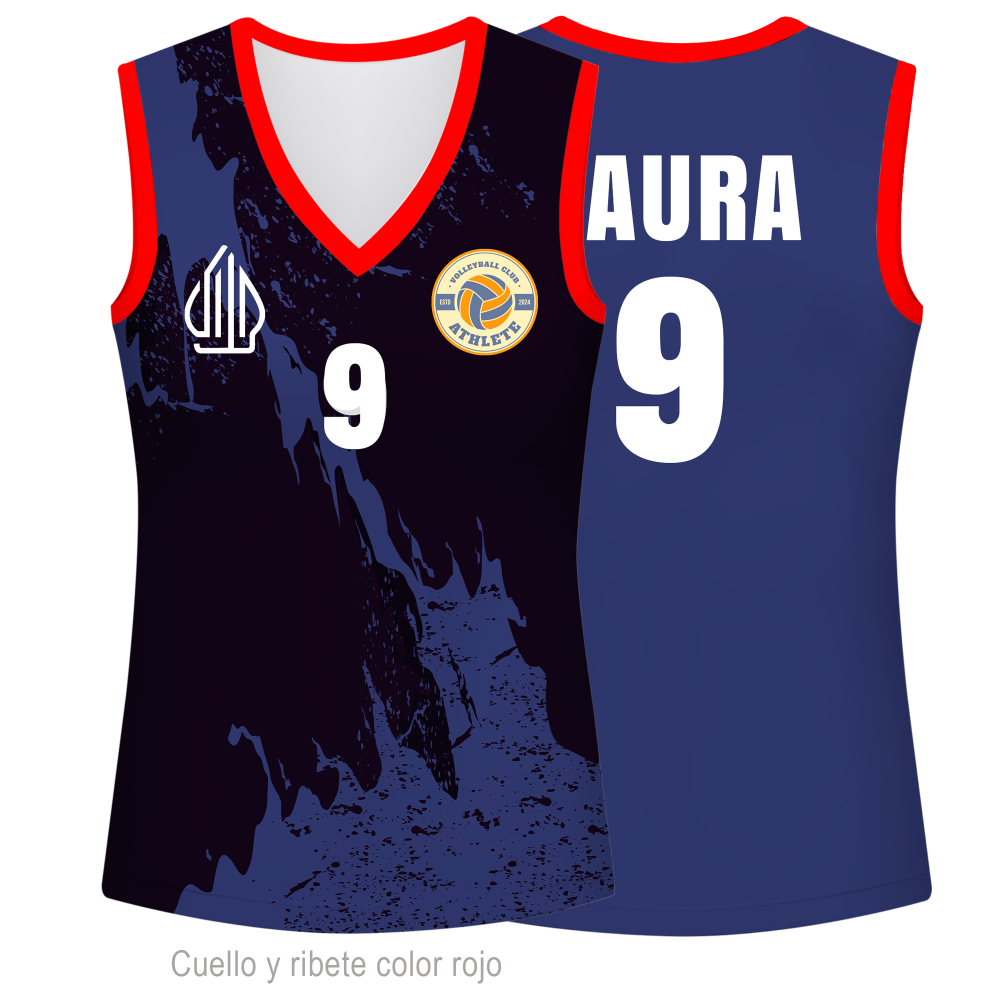 Camiseta de mujer ideal para actividades como voleibol. Modelo HAYA sin mangas y cuello en pico que se puede personalizar al 100% por delante y detrás. También podrás escoger el color del cuello y ribete.