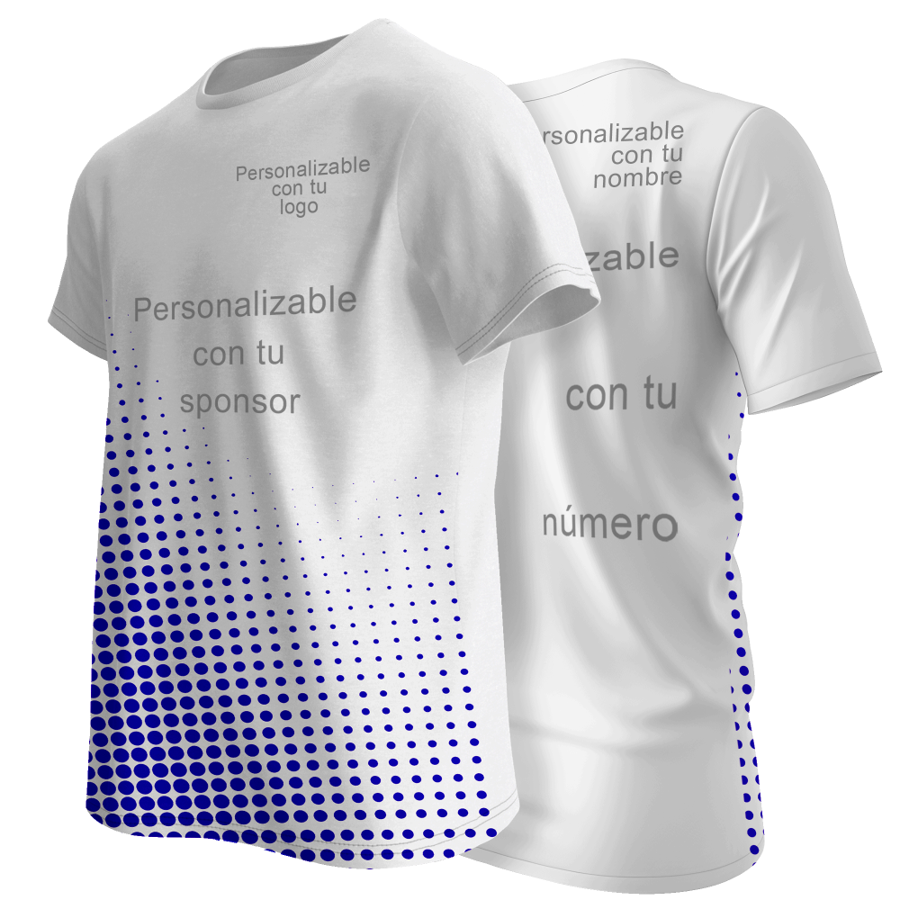 Camiseta unisex ideal para todo tipo de actividades y deportes. Modelo Puntos con cuello redondo y doble cosido reforzado que puedes personalizar hasta en 4 zonas diferentes: logo, sponsor, nombre y número.