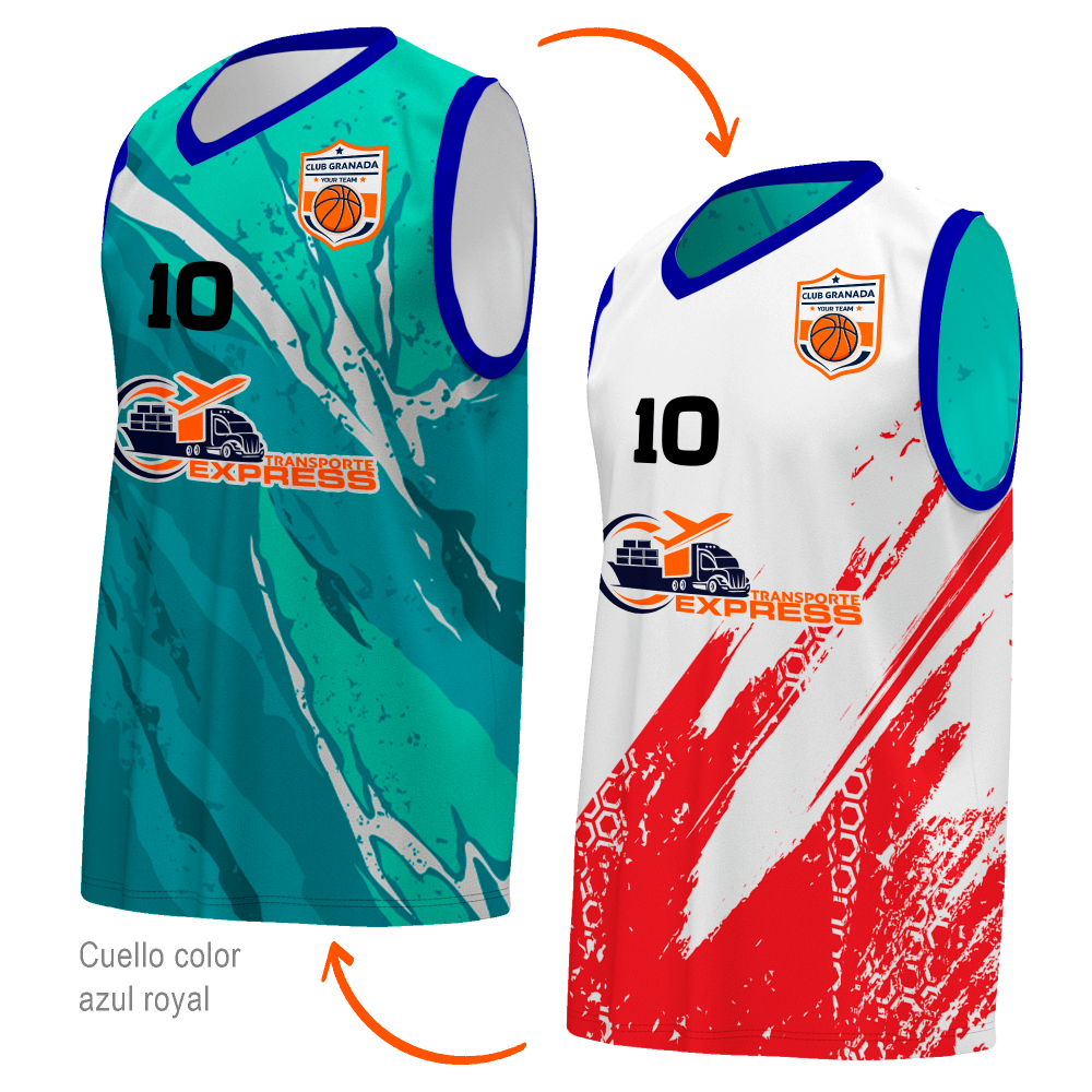 Camiseta reversible ideal para todo tipo de actividades y deportes. Modelo GRECIA sin mangas y con cuello pico contrastado que se puede personalizar al 100% por delante, detrás y cara externa e interna de la camiseta. También puedes escoger el color de cuello y ribete.