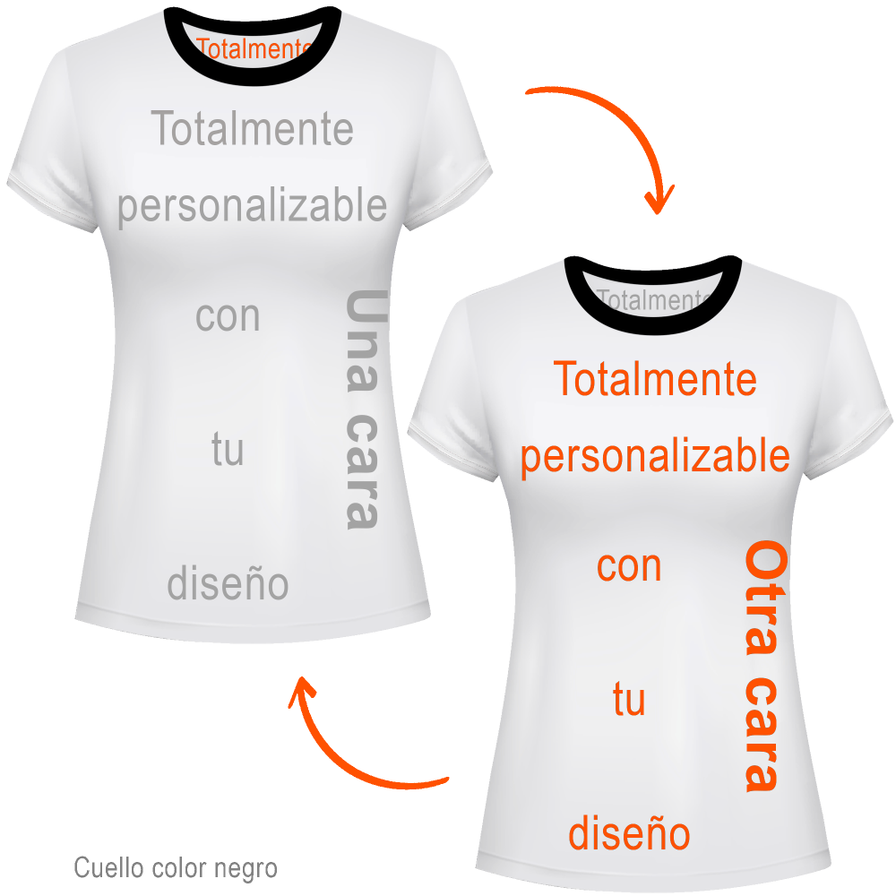 En esta prenda puedes personalizar la totalidad de la parte delantera, trasera y mangas. También podrás escoger el color del cuello.