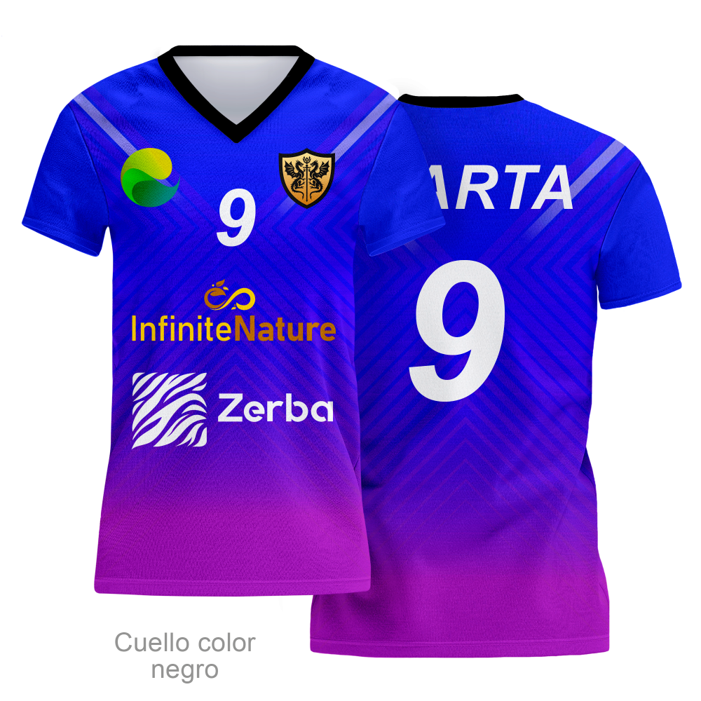 En esta prenda puedes personalizar la totalidad de la parte delantera, trasera y mangas de la camiseta. También, en el apartado Producto puedes escoger el color del cuello que desees.