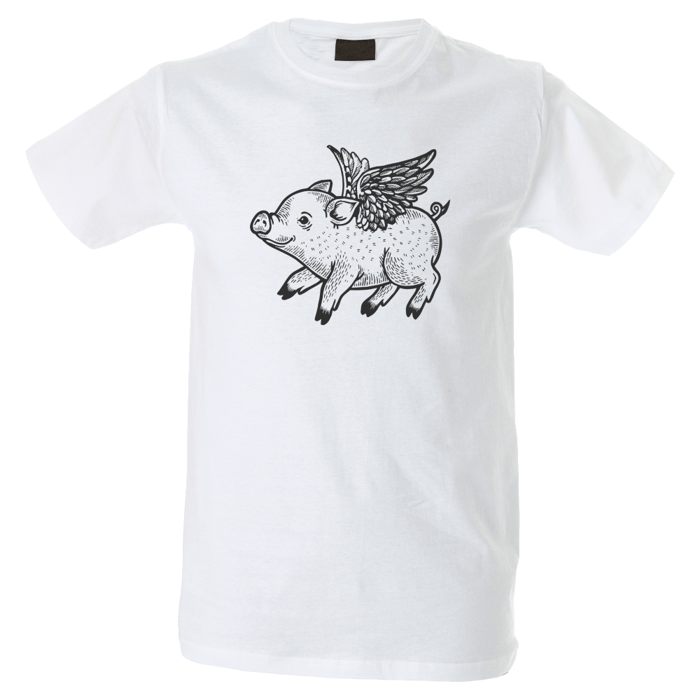 Camiseta hombre cerdito volador