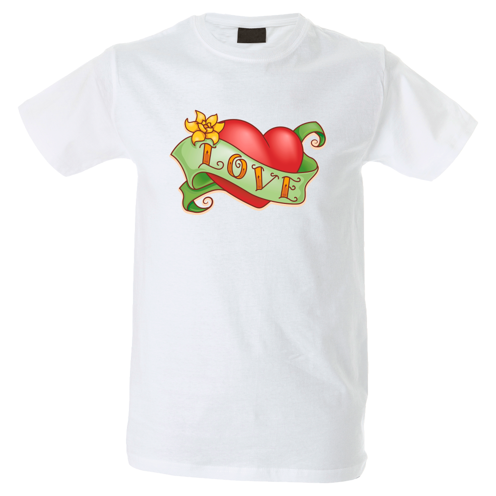 Camiseta hombre de cuello redondo con cinta de refuerzo en el cuello con diseño de corazón love