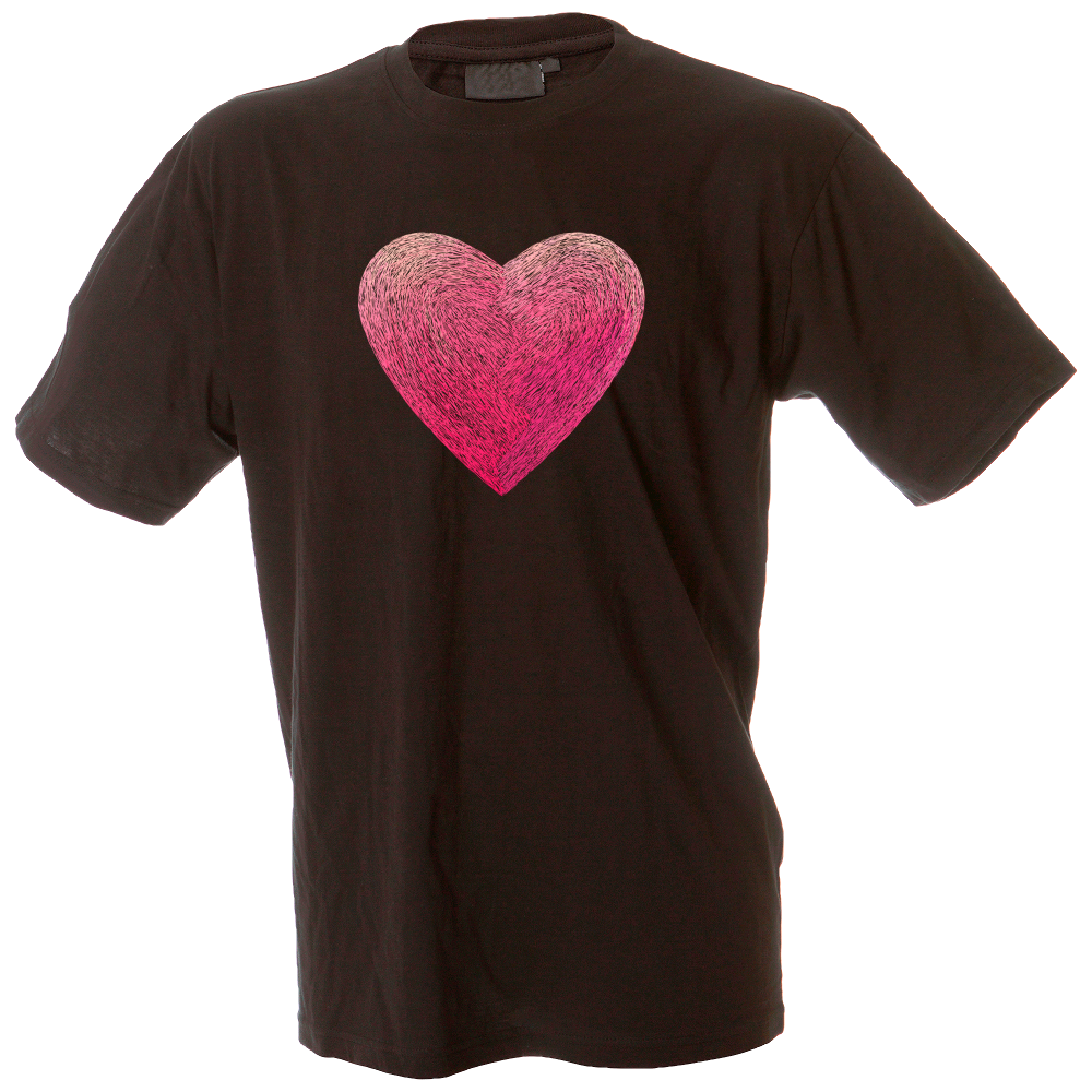 Camiseta hombre de cuello redondo con cinta de refuerzo en el cuello con diseño de corazón rayado