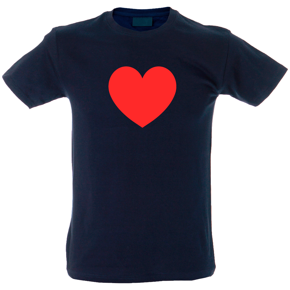 Camiseta hombre de cuello redondo con cinta de refuerzo en el cuello con diseño de corazón rojo