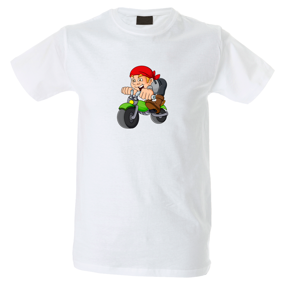 Camiseta hombre de cuello redondo con cinta de refuerzo en el cuello con diseño de dibujo moto