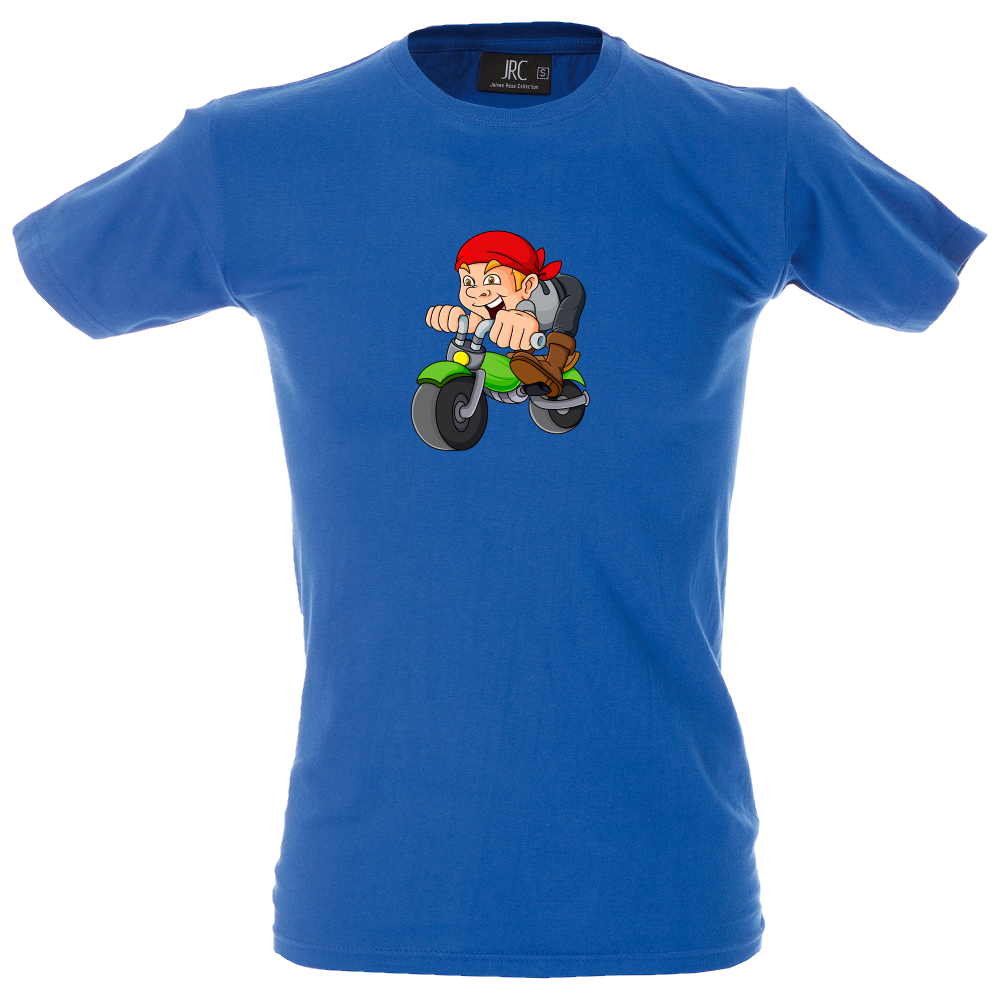 Camiseta hombre de cuello redondo con cinta de refuerzo en el cuello con diseño de dibujo moto