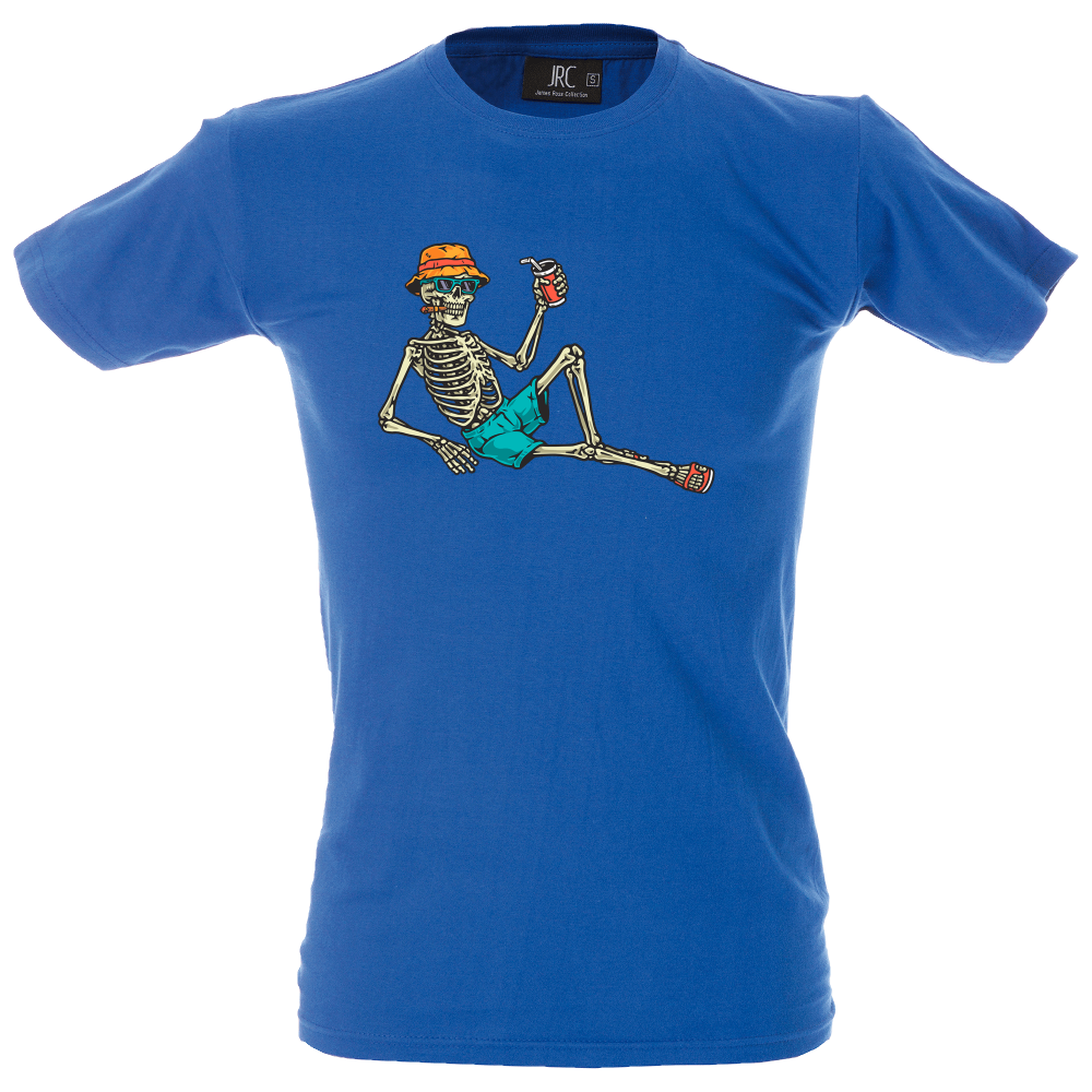 Camiseta hombre de cuello redondo con cinta de refuerzo en el cuello con diseño de esqueleto playero