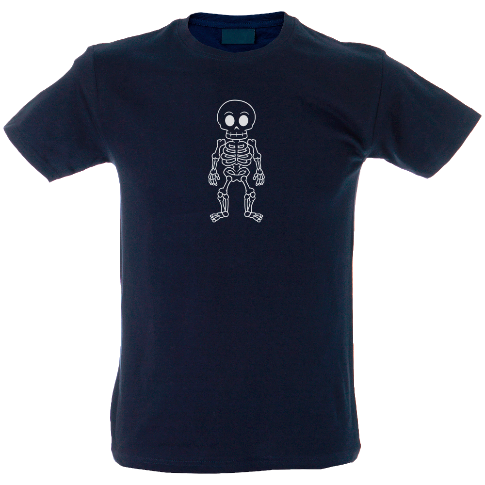 Camiseta hombre de cuello redondo con cinta de refuerzo en el cuello con diseño de esqueleto linea