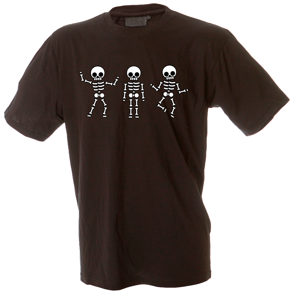Camiseta hombre de cuello redondo con cinta de refuerzo en el cuello con diseño de esqueletos bailando