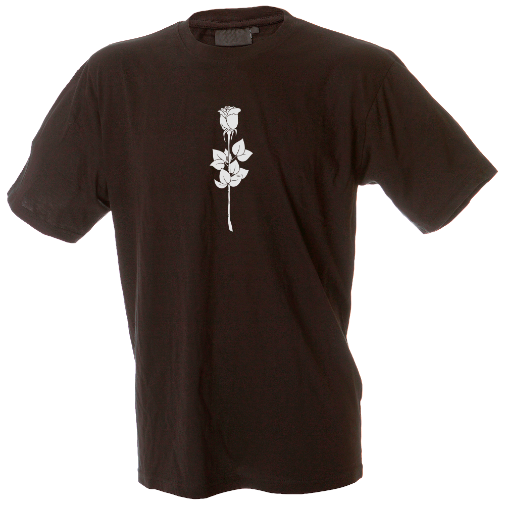 Camiseta hombre de cuello redondo con cinta de refuerzo en el cuello con diseño de flor rosa
