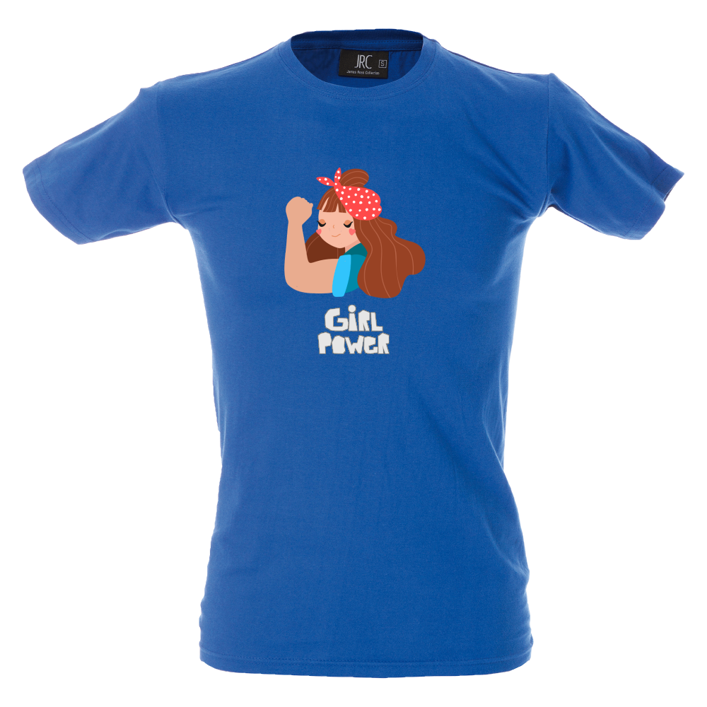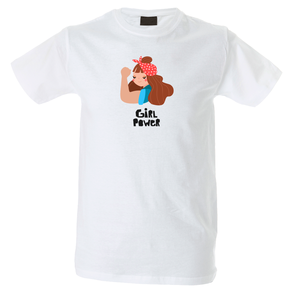 Camiseta hombre de cuello redondo con cinta de refuerzo en el cuello con diseño de girl power