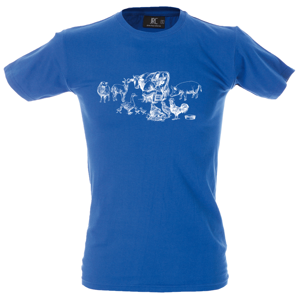 Camiseta hombre de cuello redondo con cinta de refuerzo en el cuello con diseño de granja