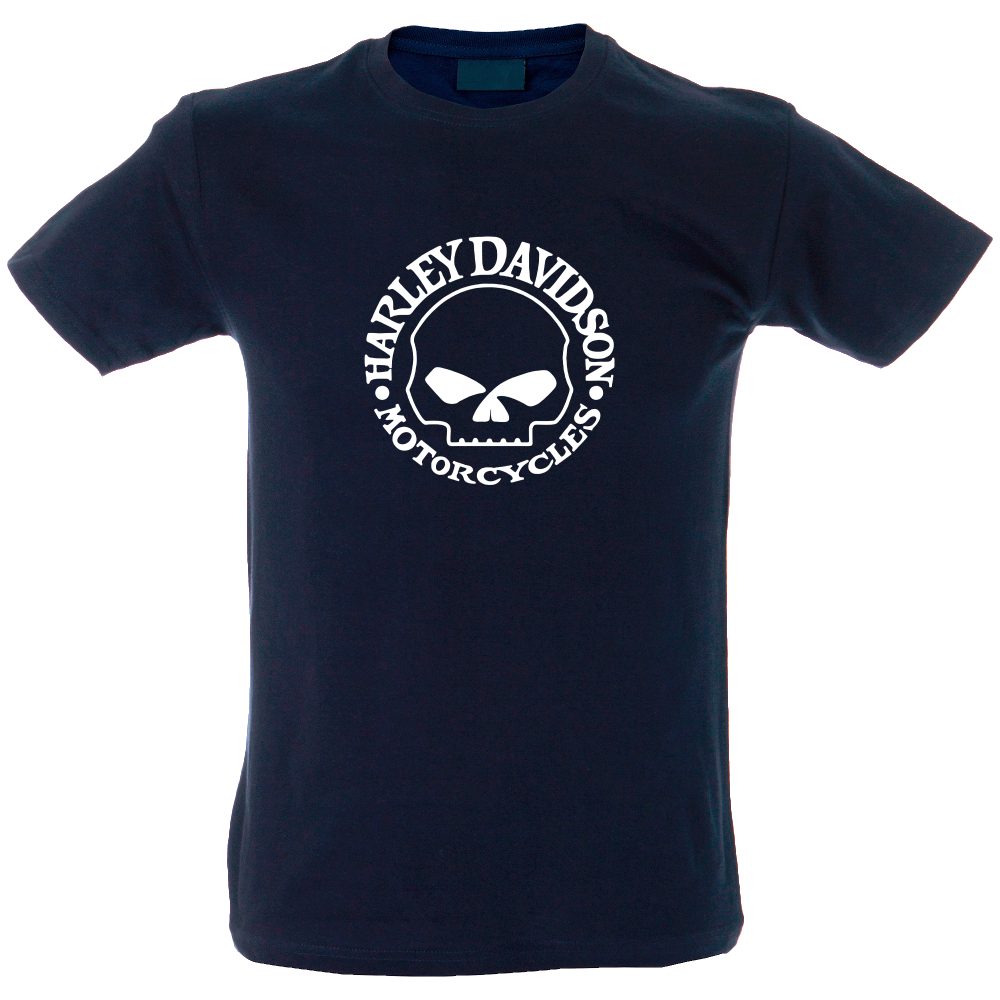 Camiseta hombre de cuello redondo con cinta de refuerzo en el cuello con diseño de harley davidson