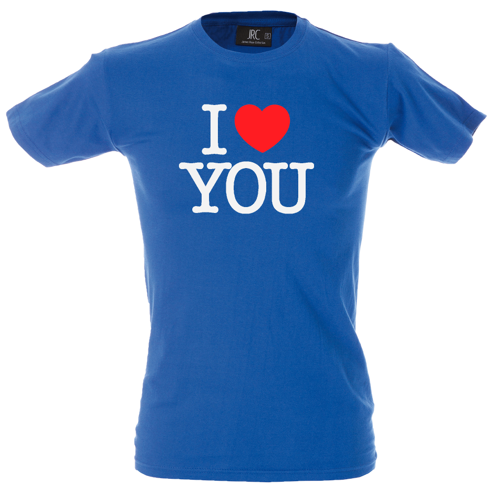 Camiseta hombre de cuello redondo con cinta de refuerzo en el cuello con diseño de i love you