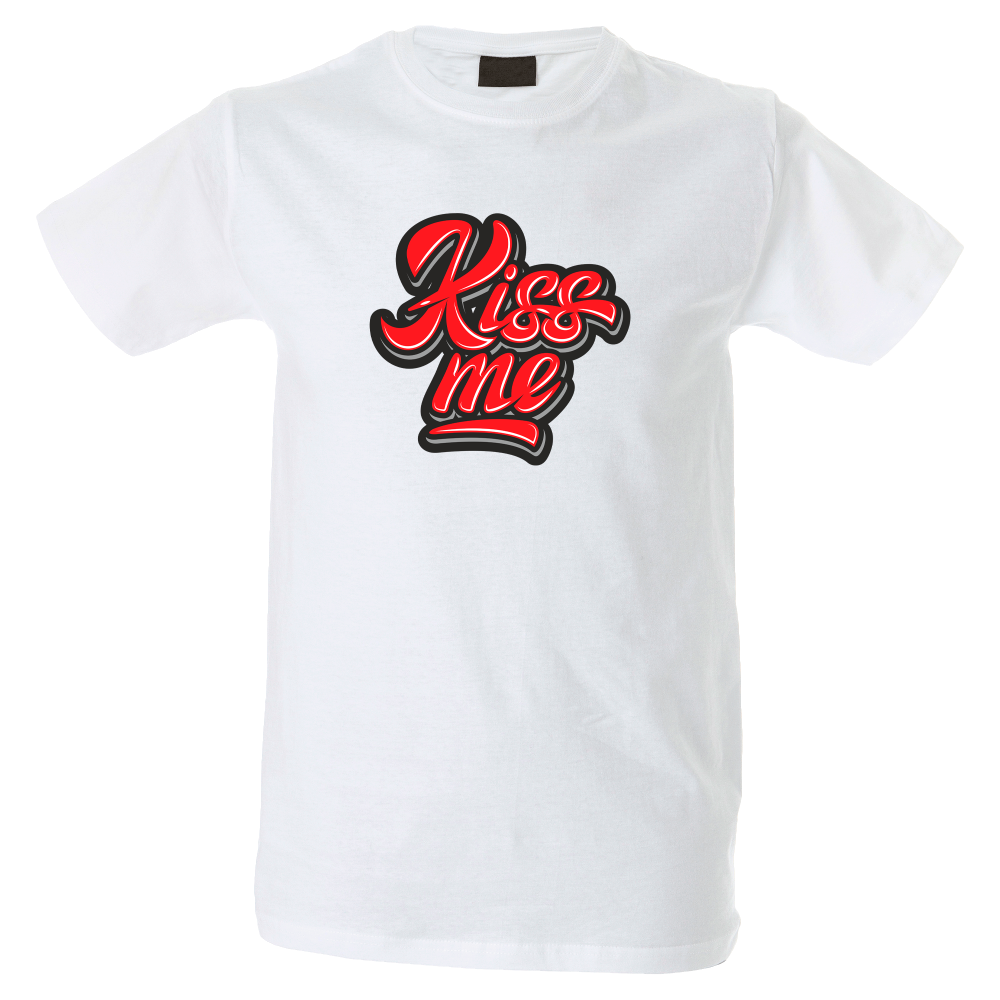 Camiseta hombre de cuello redondo con cinta de refuerzo en el cuello con diseño de kiss me