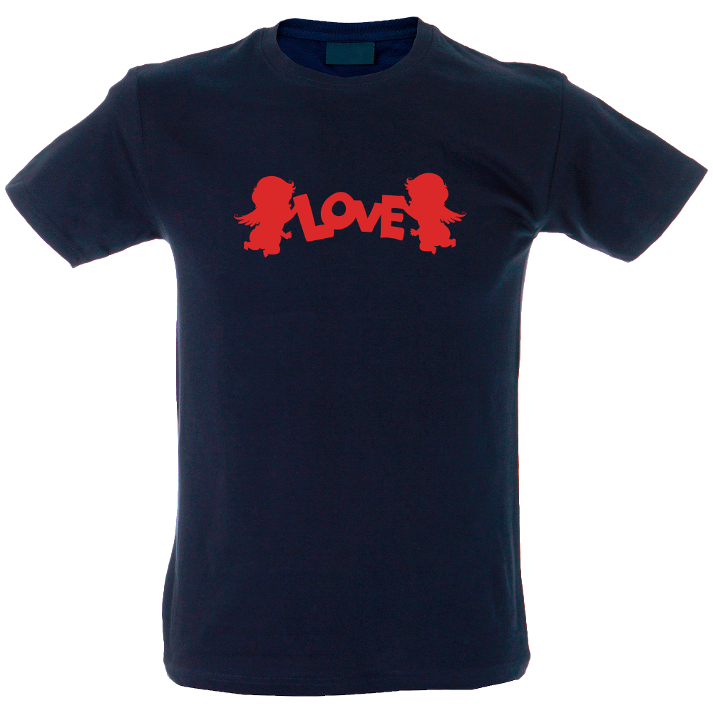 Camiseta hombre de cuello redondo con cinta de refuerzo en el cuello con diseño de love cupido