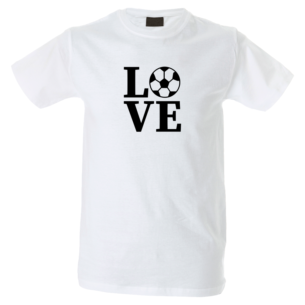 Camiseta hombre de cuello redondo con cinta de refuerzo en el cuello con diseño de love fútbol