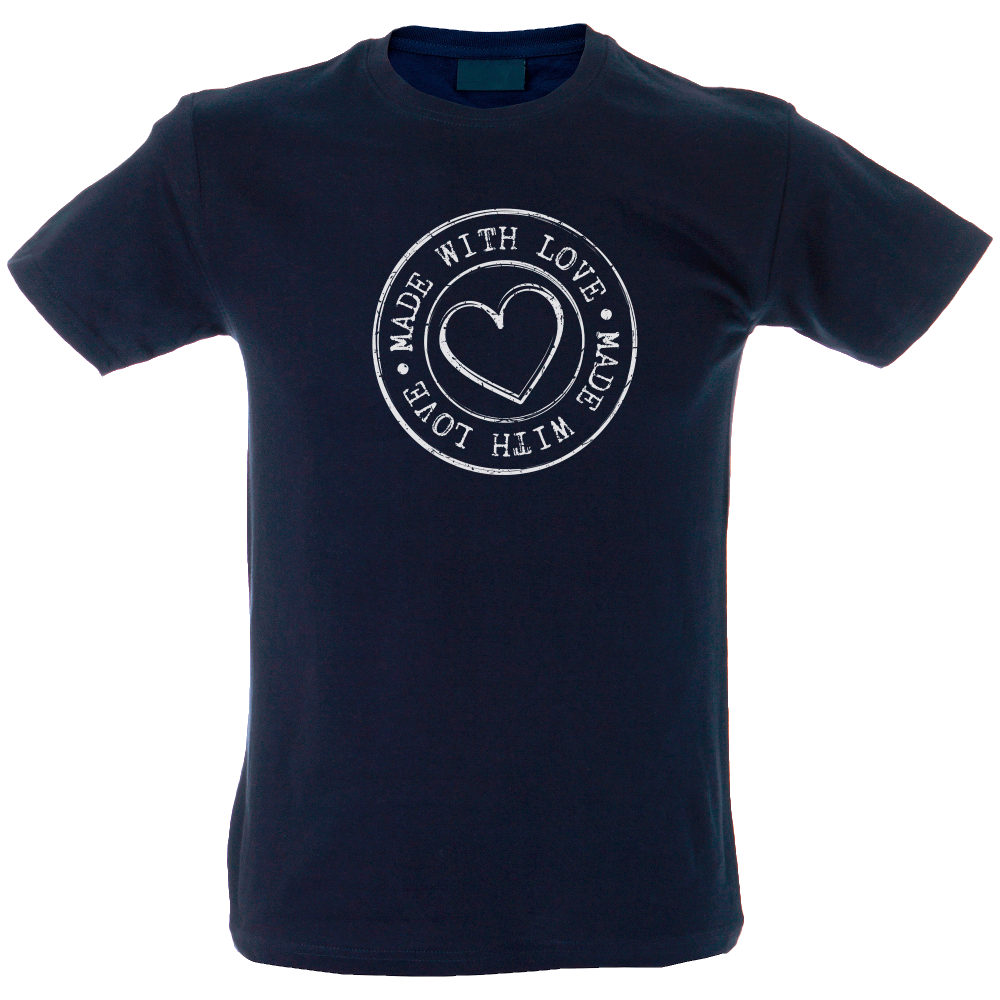 Camiseta hombre de cuello redondo con cinta de refuerzo en el cuello con diseño de made with love