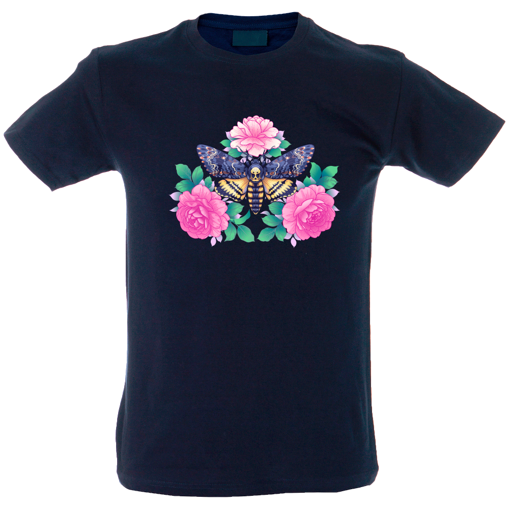 Camiseta hombre de cuello redondo con cinta de refuerzo en el cuello con diseño de mariposas